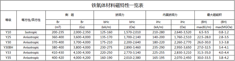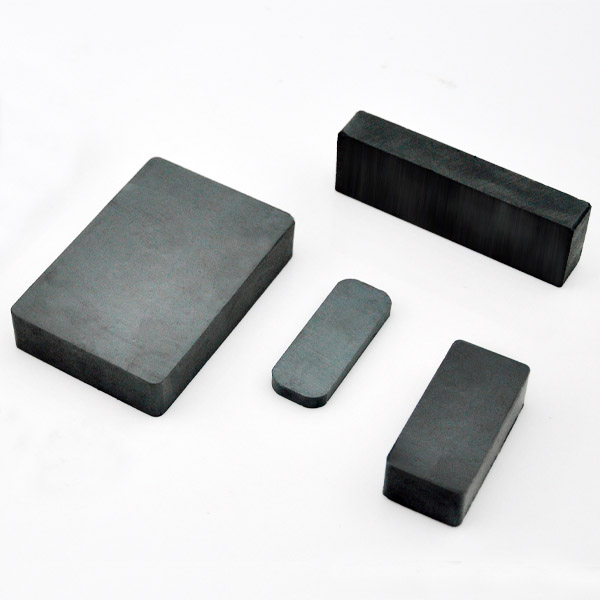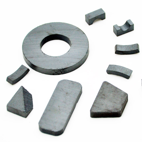 鐵氧體是應用最廣泛的的一種永磁材料,以粉末冶金法制造,主要分為鋇料(Ba)和鍶料(Sr)兩種,并分為各向異性和各向同性兩類,是不易退磁不易腐蝕的一種永磁材料,最高工作溫度可達250攝氏度,較堅硬且脆,可用金剛石沙等工具切割加工,用合金剛加工之模具一次成型。此類產品大量應用于永磁電機(Motor)和揚聲器(Speaker)等領域。